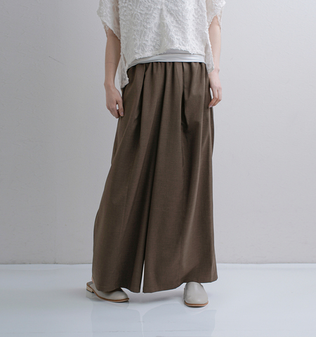 ツータックを施したワイドシルエットが、腰まわりにゆとりを持たせながら美しいラインを演出。脚のラインを拾いにくく、リラックス感のある穿き心地です。