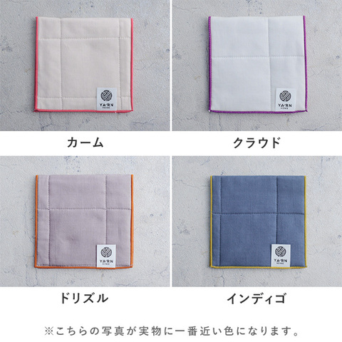 医療用としても使われるほど安全品質のガーゼ素材で、アンジェでも以前からご好評いただく「YARN HOME」。新たに届いたのは持ち歩きやすいハーフサイズのハンカチです。