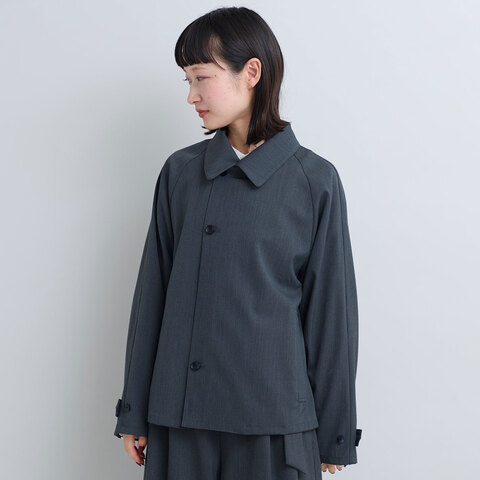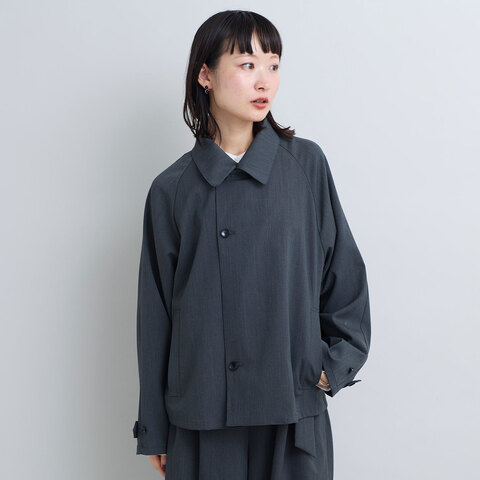 ほんのりとツヤのある上質なギャバジン生地を使用しているので、ラフに前を開けて着ても品のある雰囲気に。