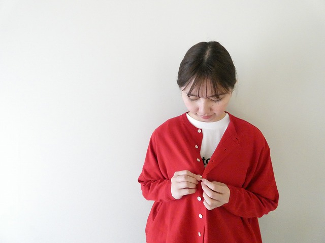 落ち着いた深みのあるレッドが印象的な、ORDINARY FITSのBARBER CARDIGAN。