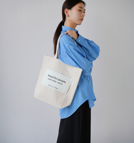 A4サイズが収まる容量を備えながら、アイコニックなビッグネームが視覚的なアクセントに。素材・副資材に至るまで配慮が行き届いた、機能性と思想性を兼ね備えたトートバッグです。
