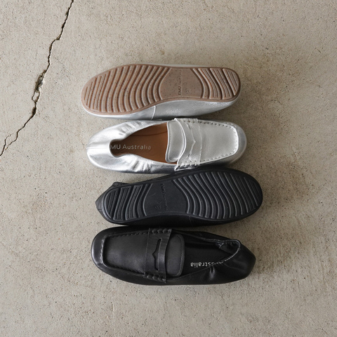 装飾を抑えたミニマルな表情は、通勤やお出かけ、旅行など幅広いシーンに自然と馴染み、装いを選ばず活躍。ブラックはスタイルを引き締め、シルバーは足元にほどよい華やかさをプラスします。