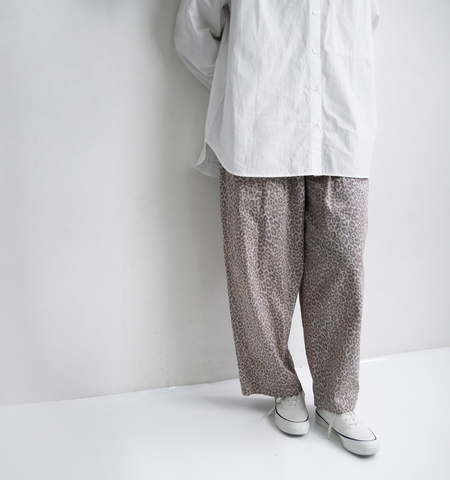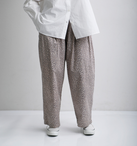 Laboratory(ラボレイトリー)よりコットン レオパード カンフーパンツ “LEOPARD KUNG FU PANTS”のご紹介です。遊び心あふれるシルエットとヴィンテージライクな表情が魅力のカンフーパンツ。どこか懐かしく、奥深い風合いのレオパードファブリック。派手になりすぎない絶妙なカラーバランスの豹柄は、日々のコーディネートに小気味よい「GOOD SPICE」を加えてくれます。