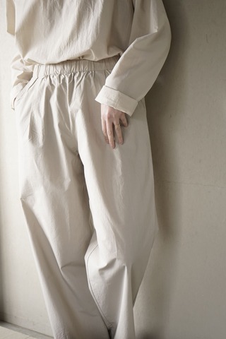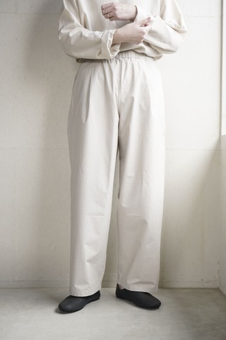 裾ゴムのパンツに目が留まり ついついオーダーしてしまうのですが このパンツもそのうちのひとつ テーパードしたシルエットや ウエストから入れたタックもアクセントになっています