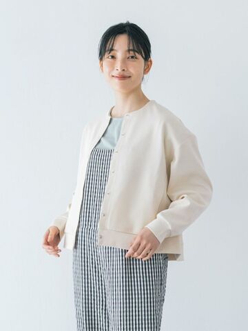 4月にはライナーベストだけで春らしい着こなしを。