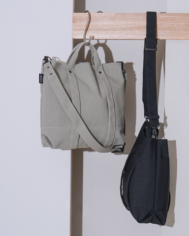 素材にはリサイクルポリエステル帆布を使用し、コットンのような自然な風合いと汚れにくさを両立。性別を問わず、通勤・通学から休日のお出かけまで、日常に自然と馴染む一品です。