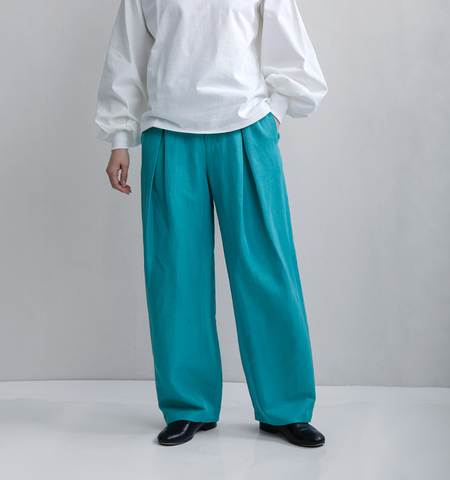 深めのタックが印象的な一本。腰まわりに程よい立体感を与え、すっきり見えのウエストラインで、トップスをインしても美しく決まります。