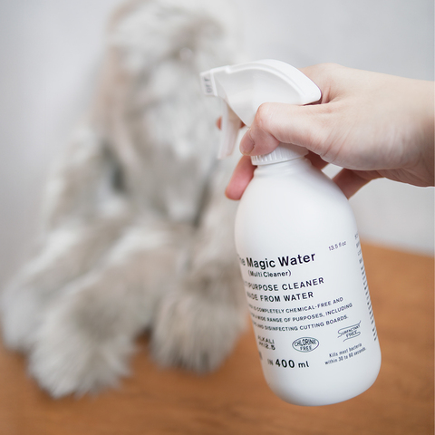 シュッと表面が濡れる程度にスプレーして、タオルで拭き取ってください