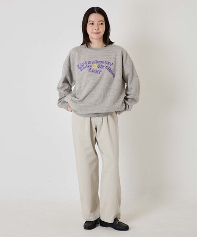 数種類の糸色をミックスした刺しゅうで表現したアイコニックなモチーフがポップな印象のクルーネックスウェットです。