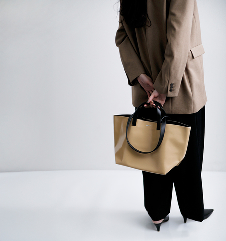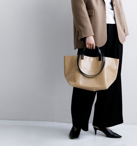 フランス語で実用性を意味する「Pratique」を冠したこのシリーズは、シンプルで程よいボリューム感と、無駄を削ぎ落とした洗練されたデザインが特徴。レザー製の持ち手とショルダーストラップを備えた2way仕様です。