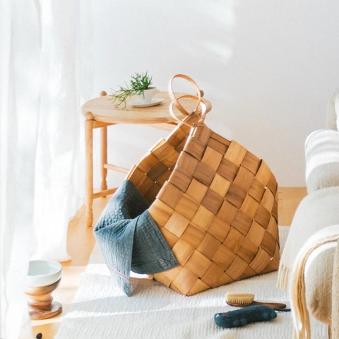 パイン材(松)のバンドを編んでつくった、ナチュラルな雰囲気のバスケット。北欧の伝統的なバスケットに見られるデザインです。