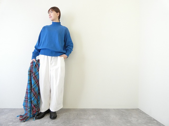 きれいなブルーが目を引く、homspunのコットンコードハイネックプルオーバー。
