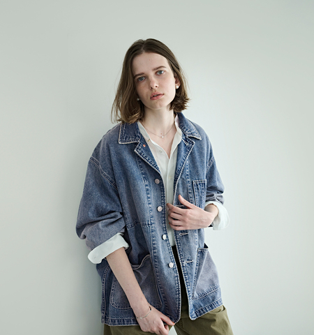首元は、程よく開きのあるラペルデザイン。ボタンを留めずに着用すれば、抜け感のある軽やかな印象に。また、ボタンを上まで留めることで、ベーシックなデニムジャケットの襟元へと表情が変わり、スタイリングに合わせた着こなしが楽しめます。