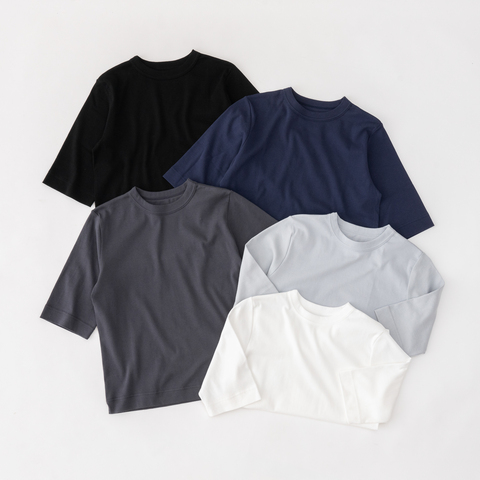 丸胴シリーズの'長袖’や ‘8分袖’と比べると、首元は詰まっていて、メンズライクな印象です。