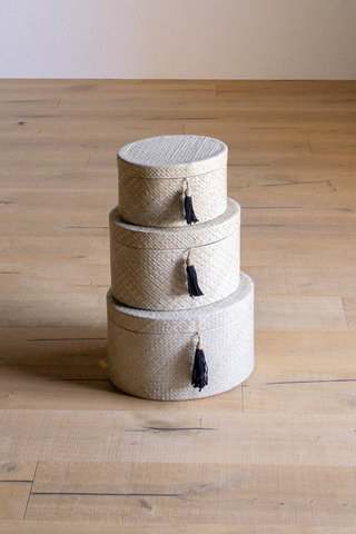 重ねて、並べて、収納を楽しむ天然素材の収納ボックス