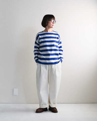着丈を少し長めにつくることで、ラフな印象のなかに上品さを感じる大人のためのボーダーです。