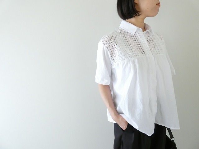胸元にあしらったレースが、さりげない華やかさを添える切替シャツ。やわらかなコットン素材で、軽やかな着心地に仕上げました。