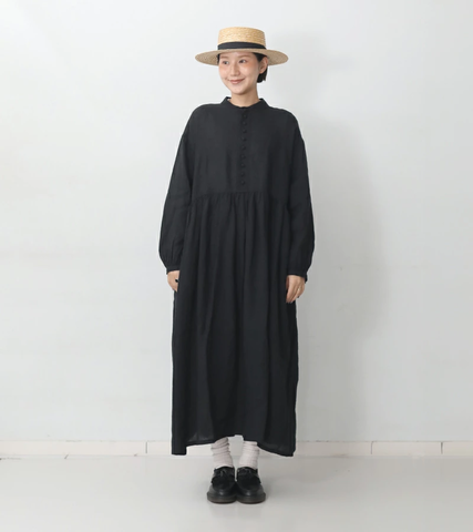ichi Antiquités|首元と袖口のレースが上品なシャツワンピース リネンドレス kurashisha spring