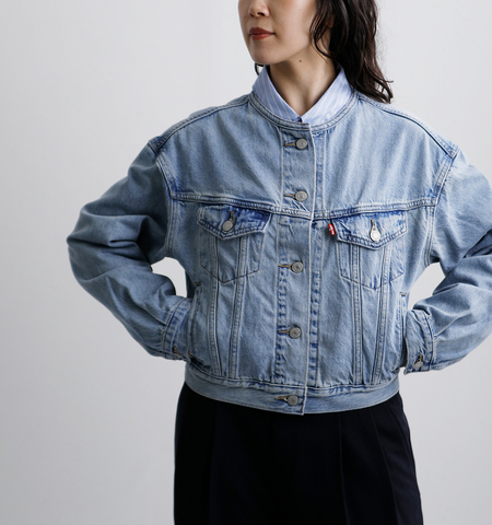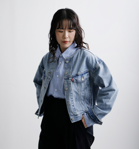 Levi'sのアイコンであるトラッカージャケットをベースに、襟を潔く取り払ったノーカラー(カラーレス)仕様へとアップデート。