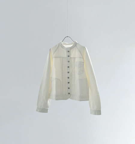 Si-Si-Si(スースースー)より、デニム バンドカラー ジャケット BASIC DENIM JACKETのご紹介です。人気のデニムジャケットから、ホワイトバージョンが登場です。ひと工夫加えられた珍しいバンドカラーで女性らしく、すっきりとした首元に。爽やかでナチュラルなホワイトデニムが魅力です。ラグランスリーブで肩回りが動かしやすく、肩まわりもしっかりカバーしてくれます。たくさん並んだボタンや、胸元のフラップポケットなど拘りの詰まったディティールも見逃せません。カジュアルながら、どこか上品さも感じさせる一着に仕上がっています。