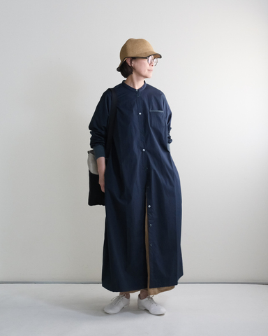 カタカナ別注スタンダードワンピースは、サンドベージュ・スモーキーサックス・ネイビーの3色展開。