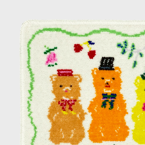 bpbp|CHENILLE HANDKERCHIEF お花を掲げる猫たち シェニール織ハンカチ 布川愛子