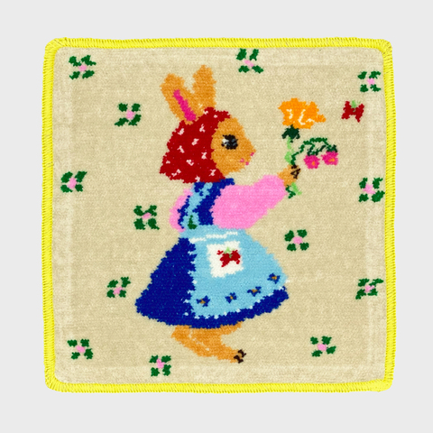 bpbp|CHENILLE HANDKERCHIEF 頭巾をかぶったうさぎ シェニール織ハンカチ 布川愛子