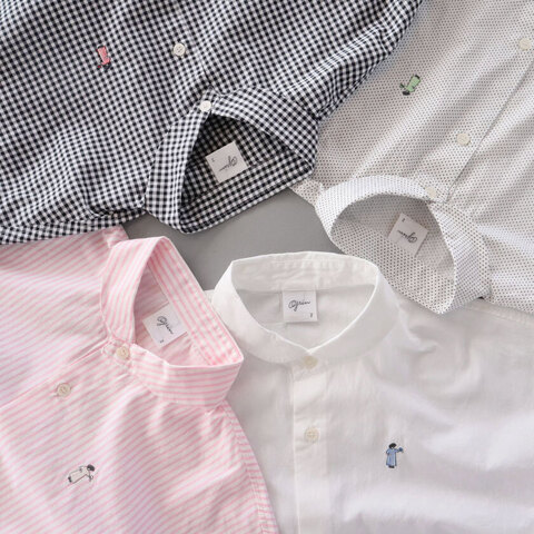 上品なブロード生地に可愛らしいワンポイント刺繍を施した「grin (グリン)」のブロードシャツです。