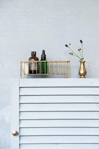 サニタリールームで化粧水やクリームを入れたり、オイルを入れたり。いろいろな場所で活躍しそう。