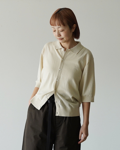 「 ハイツイストコットン ポロ5分袖カーデガン 」