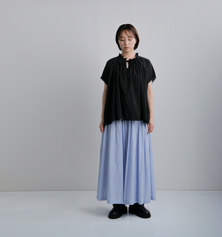 軽やかで繊細な表情が魅力の、SOIL定番コットンボイル素材を使用したギャザーシャツ。ふんわりとしたエアリーな質感と、やさしい透け感が女性らしい雰囲気を引き立てます。一枚で主役になるのはもちろん、前を開けてラフに着こなすのも◎。デニムやリネンパンツと合わせたナチュラルなスタイリングから、スカートと合わせた上品な着こなしまで幅広く対応します。