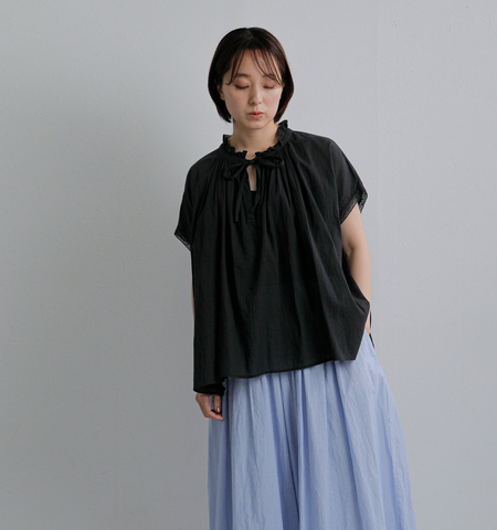 SOIL(ソイル)より、コットンボイル レース ストリング カラー ギャザー シャツのご紹介です。