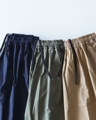 ウエストはゴムとドローストリング仕様で、きちんと感がありながらも、リラクシングな穿き心地が嬉しいポイントです。