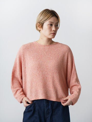 甘く撚ったループヤーンを使用し、凹凸のある表面感が表情豊かなプルオーバーニット。サラリとした肌触り、通気性の良い爽やかな着心地で、これからの季節にぴったりです。淡く優しい色合いも春らしく、肌にも洋服にも馴染みが良いので、色物でも取り入れやすくなっています。