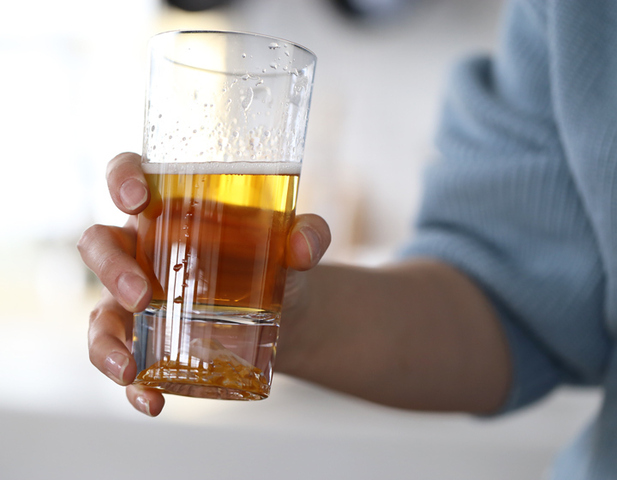 ビールを注いだなら、山のふもとがほんのり黄金色に…。