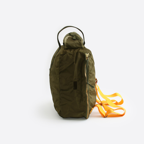 調節できるショルダーストラップには発色の良いイエローが使用されており、軍用機内でも見つけやすく、視認性を考慮した好配色です。