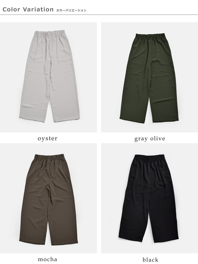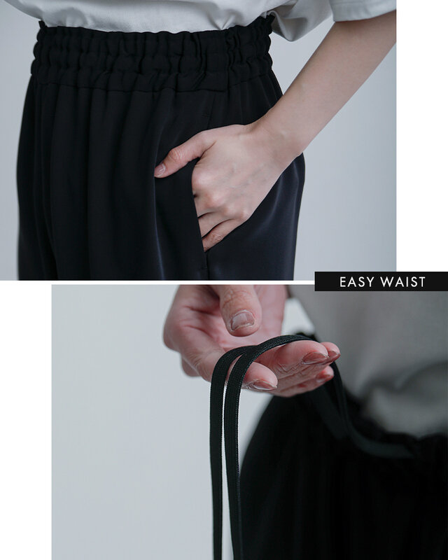 ほどよいとろみが生み出す落ち感とマットな艶が、動くたびにやわらかく揺れ、コーディネートに自然な抜け感と上品さをプラスします。