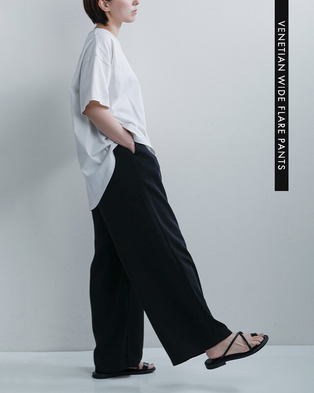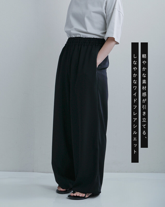 さりげない艶と落ち感が上品な、軽やかワイドフレアパンツ