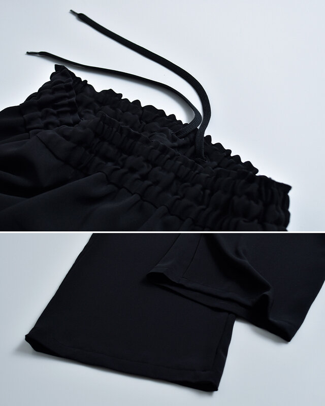 両サイドには便利なシームポケット付き。ウエストは内側の紐で調整できるイージー仕様で、快適な穿き心地に仕上げています。