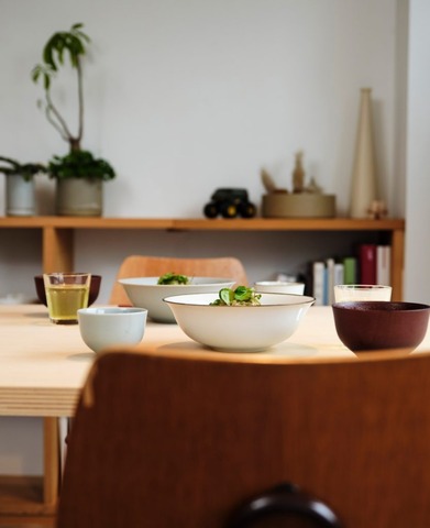 アジアのモダンなテーブルウェアを参考にしながら、さまざまな料理のスタイルに対応できるよう、皿やボウルなど、フォルムにこだわったコレクションを展開しています。