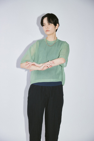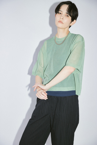 YARRA NEU|16GGシースルー半袖ニットプルオーバー NU-5622-440