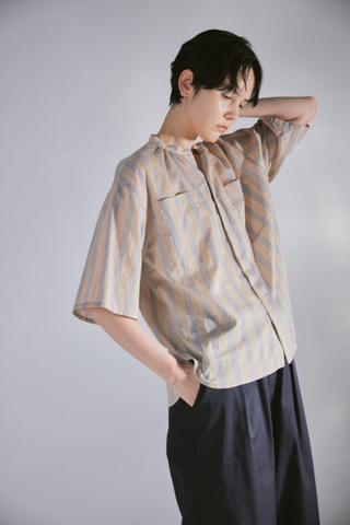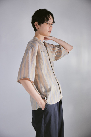 多素材のストライプ生地を組み合わせた表情豊かなシャツ。柔らかく軽やかな生地感が肌に心地よく馴染み、通気性に優れているため蒸し暑い日でも涼しく快適に着用いただけます。
