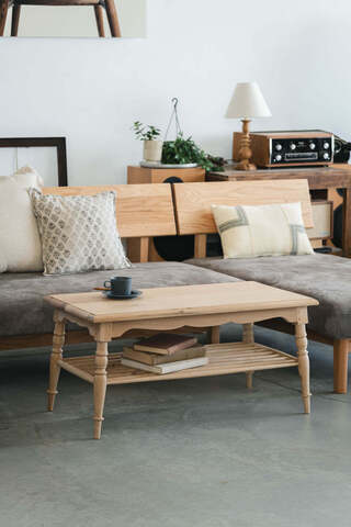 コーヒーテーブルとしてはもちろん、軽食や読書、作業のサブテーブルとしても活躍します。リビングの中央に置いても圧迫感がなく、空間にすっと馴染むサイズ感です。