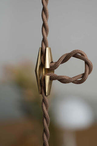 モダンなフォルムと真鍮の輝きが特徴の照明コードアジャスター