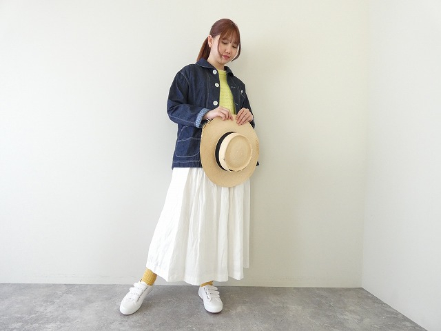 インディゴカラーは、白や生成はもちろん、ボーダーやきれいな色のトップスとも好相性。