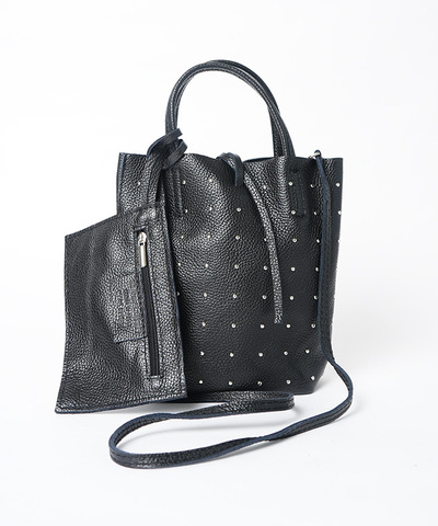 シルバースタッズが存在感を上げる、2wayレザーバッグ