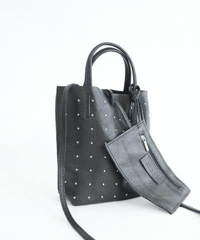 ・シルバーのスタッズがアクセントになる、2wayレザーミニバッグ。