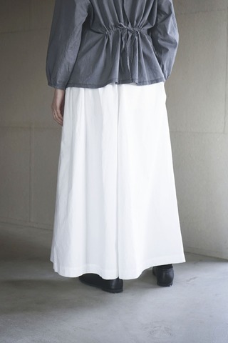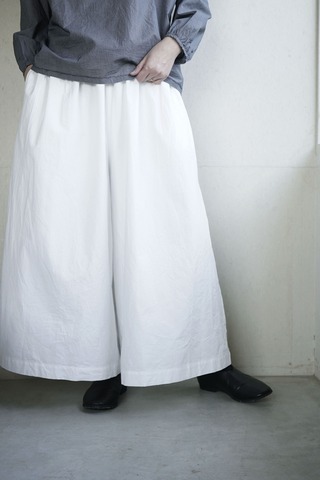 裾ゴムのパンツに目が留まり ついついオーダーしてしまうのですが このパンツもそのうちのひとつ テーパードしたシルエットや ウエストから入れたタックもアクセントになっています