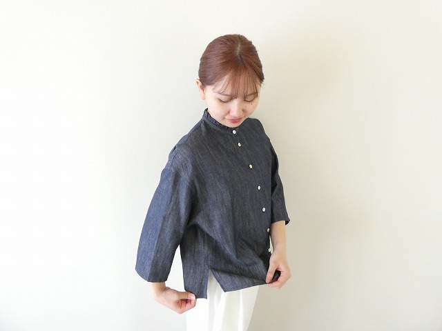 綿・麻・テンセルを組み合わせた生地は、デニムの風合いを感じながらも、しなやかでやさしい肌触り。