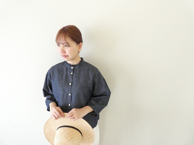 デニムの落ち着いたインディゴカラーは、パンツにもスカートにも合わせやすく、日常のコーディネートに自然となじむ一着。